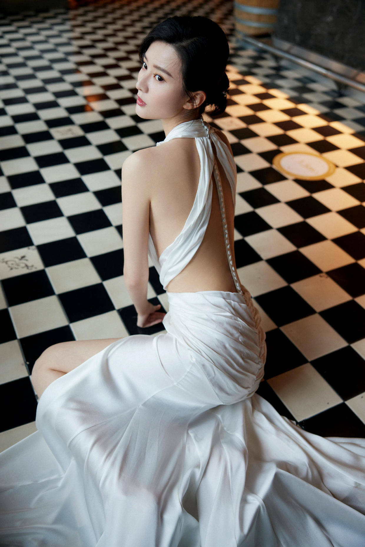 白色挂脖连衣裙搭配大片露背设计,凸显骨感美,后背处圆润肩头与白皙肌肤尽显。若拥有蝴蝶骨,不妨大胆尝试,或能收获意想不到的完美效果。